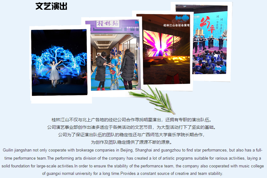 桂林江山會議會展有限責公司是一家專業(yè)的MICE公司;是傳統(tǒng)服務(wù)與信息技術(shù)相結(jié)合的科技型公司。 公司立足于線下活動的豐富經(jīng)驗,堅持運用信息技術(shù)為各類活動(項目)提供更優(yōu)質(zhì)與便捷的管理與服務(wù)。公司開發(fā)的《冬瓜云服務(wù)與管理系統(tǒng)》《雙線展覽平臺》《注冊通》《報到通》《多點位全景直播平臺》等應(yīng)用軟件處于行業(yè)領(lǐng)先地位。桂林江山會議是一個大家庭,于2012年創(chuàng)立,經(jīng)過長期的經(jīng)營,吸納與培訓(xùn)了大批關(guān)于會務(wù)服務(wù)、設(shè)計創(chuàng)意、公關(guān)演藝、會獎活動、信息技術(shù)等項目的眾多專業(yè)人材,涉及展覽工程搭建、慶典活動策劃、影視制作與直播、大型文藝演出、會獎旅游、H5、小程序等軟件的開發(fā)等眾多業(yè)務(wù)。江山會議由一支具有超前的營銷理念并...